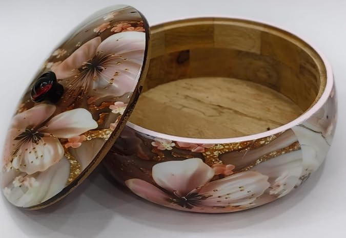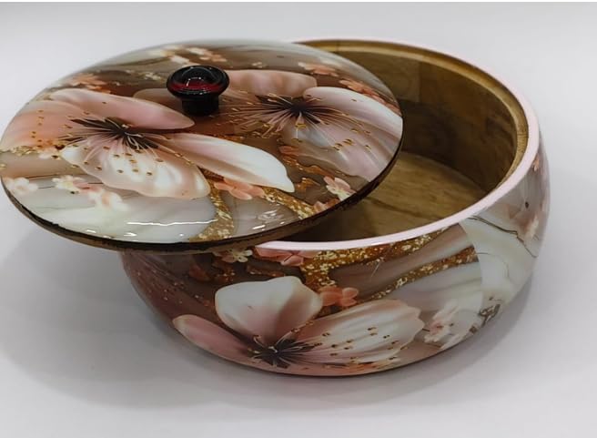 Be the first to review “WOOD CRAFT Premium Handcrafted Solid Wood Floral Print Design Roti Casserole for Kitchen | Round Hot Pot for Roti and serving Dishes, Roti Dabba with Lid and Nob (brown)”